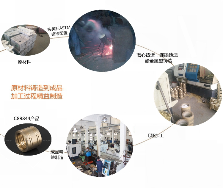 本產(chǎn)品實(shí)行ASTM標(biāo)準(zhǔn)………………………………………………… 根據(jù)客戶產(chǎn)品需求我們提供的鑄造方式有:離心鑄造,連續(xù)鑄造和金屬型鑄造?!?牌號(hào)C89844合金銅化學(xué)成分:Cu83-86 Sn3-5 Pb0.2 Zn7-10 Fe0.3 Al0.005 Si0.005 Ni1 Sb0.25 P0.05 S0.08
